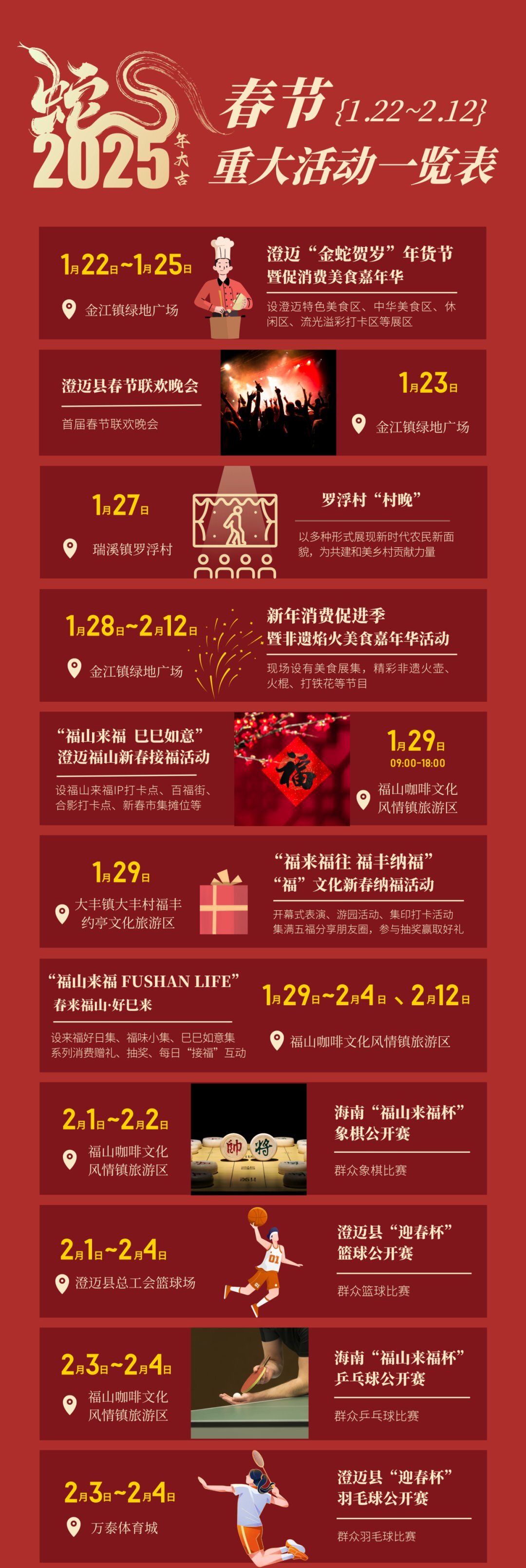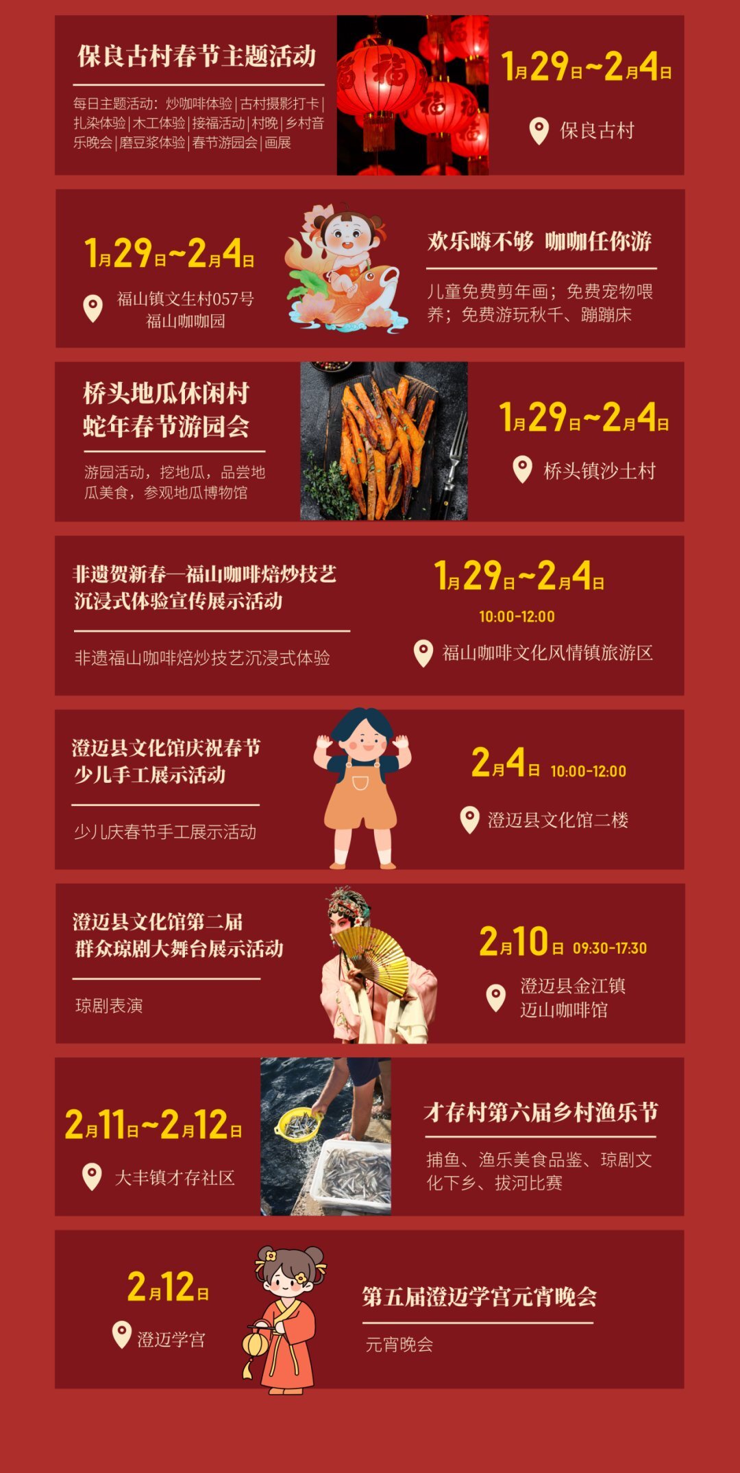 商报全媒体讯(椰网/海拔新闻记者 唐伟杰)春节马上到,活动很热闹,美食、非遗、表演、比赛、游园、手工、纳福、抽奖......丰富群众精神文化生活,营造欢乐喜庆氛围,澄迈推出一系列精彩纷呈活动。